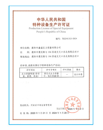 您好;歡迎訪問濮陽(yáng)市鑫盛壓力容器有限公司官方網(wǎng)站!